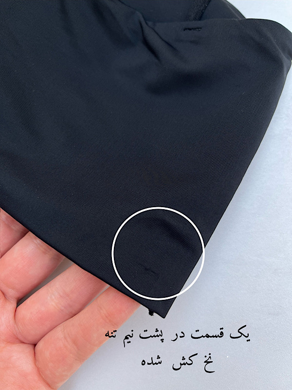 رنگ مشکی : در قسمت پشت نیم تنه یک قسمت نخ کش شده